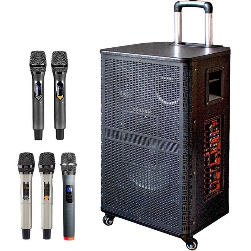 (2025年超值版)大聲公鼎艦型15吋專業重低音無線式多功能行動音箱/喇叭(五組無線手持麥克風)