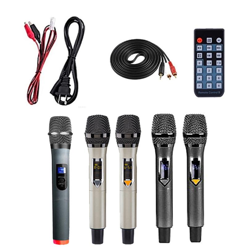 4.配贈內建型UHF液晶屏幕無線手持麥克風X2、外置型USB充電式無線手持麥克風 X 2 (附接收器組),及外置型無線手持麥克風X1 (附接收器組),共五支無線麥克風,皆可同時使用。