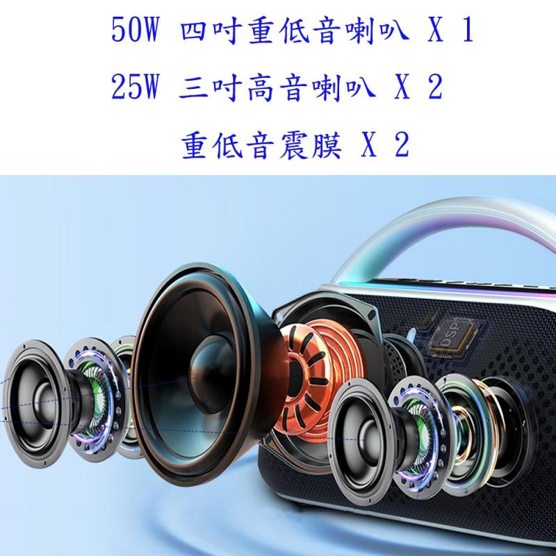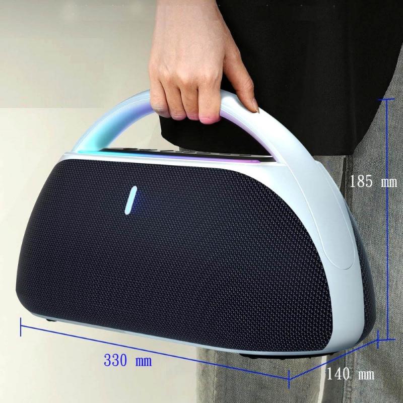 3.內建4吋種低音喇叭X1,3吋高音喇叭X2,音箱背後兩個重低音震膜。低音渾厚有力,高音清晰明亮。3D立體HiFi音效。