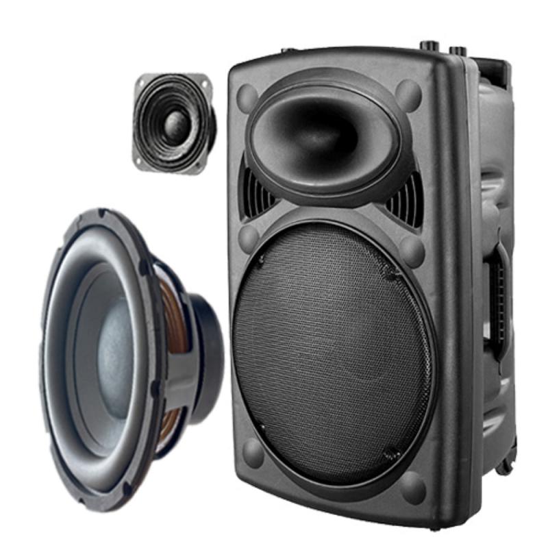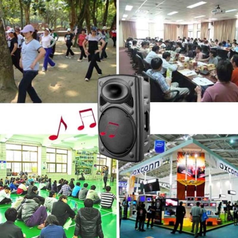 2. 內置15吋高功率低音喇叭及同軸磁鋼式高音喇叭, HiFi立體聲,高音清晰響亮,低音沉穩有力。